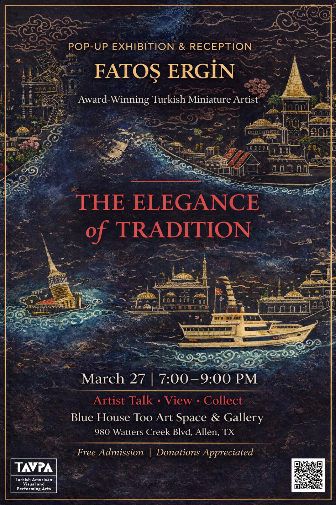 Our mission is to bridge cultures through the arts. By organizing exhibitions, performances, and educational programs, TAVPA brings people together to celebrate the richness of Turkish-American heritage and global artistic influences.