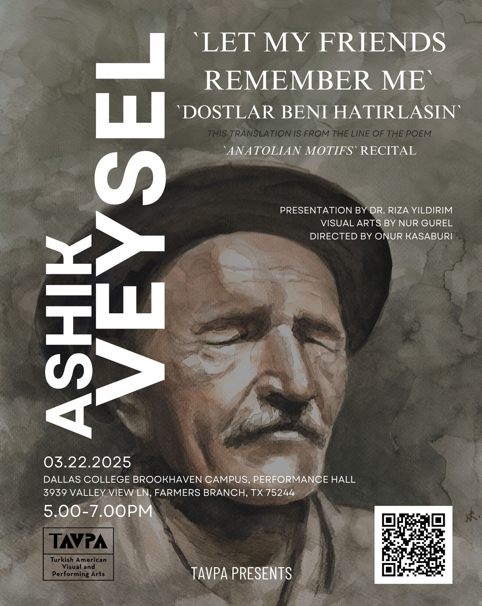 Brookhaven Campus, Dallas College 3939 Valley View Lane, Farmers Branch, United StatesUNESCO renowned Asik Veysel 52nd Year Remembrance Program Excitement is in the air! Get ready to be part of something extraordinary at Turkish American Visual And Performing Arts's fundraising event. Every registration to this event will bring us closer to achieving our mission. Together, we can create a brighter, more compassionate world for all. Thank you for […]